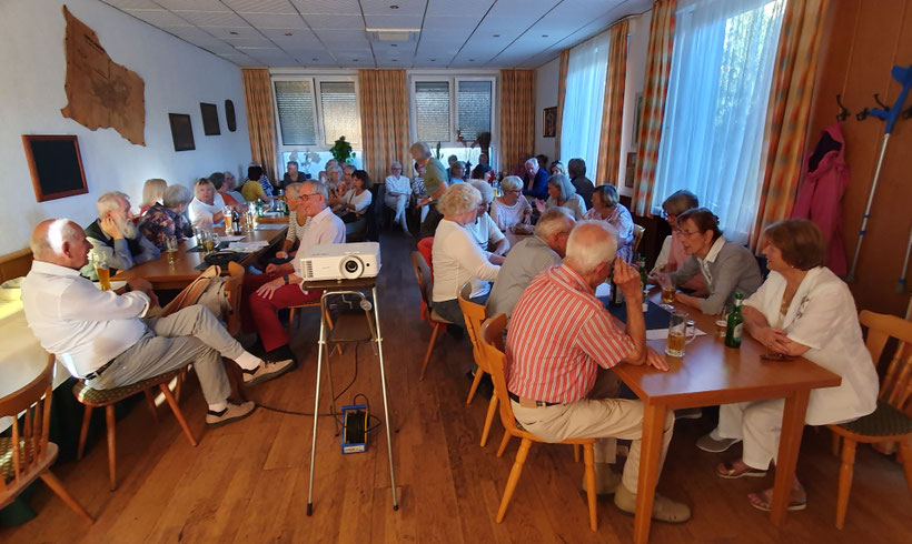Über 40 Mitglieder des Partnerschaftsvereins Hirschberg hatten sich eingefunden, in gespannter Erwartung der Bilderpräsentation. Diese stellte Reinhard Korkowski nicht nur kurzweilig vor, sondern die Bilder erfuhren durch Magdalena Kiefert-Mühleisen sogar eine musikalische Untermalung. Akkordeonmusik – die Klänge ließen augenblicklich französisches Flair aufkommen. Immer wieder war fröhliches Lachen im Raum zu hören, als sich einige auf den präsentierten Bildern wiedererkannten. Die Fotos aus der Partnergemeinde Schweighausen weckten lebhafte Erinnerungen, besonders an das köstliche Essen in einer außergewöhnlichen Lokation.