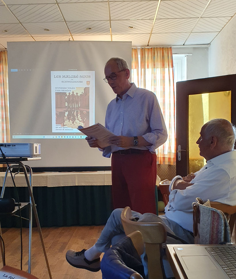 Als Nazi-Deutschland unsere Jugendlichen aus dem Elsass und der Mosel zwangsweise als Kinder des Reiches eingliederte, obwohl sie Kinder Frankreichs waren, und damit ein Kriegsverbrechen beging, erfuhren diese zwangseingegliederten Malgré-nous Folter in der Kälte der sowjetischen Front, wohin sie geschickt wurden und wo 40.000 von ihnen im Kampf oder später in Gefangenschaft starben.